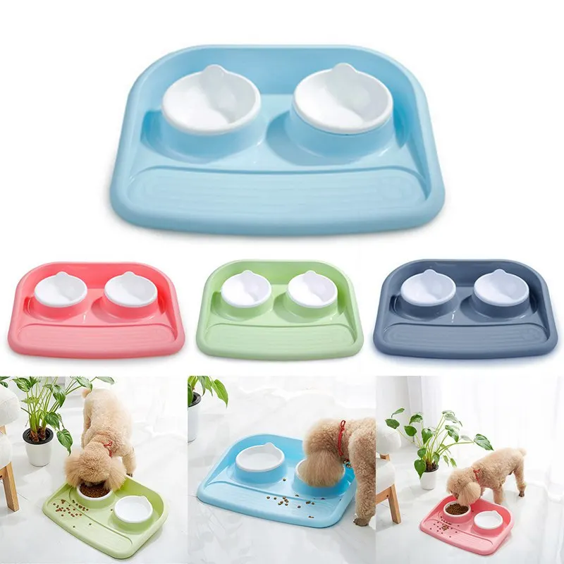HOT SALE Gray environmental protection food grade plastic bone type double bowl pet bowl splashproof dog bow