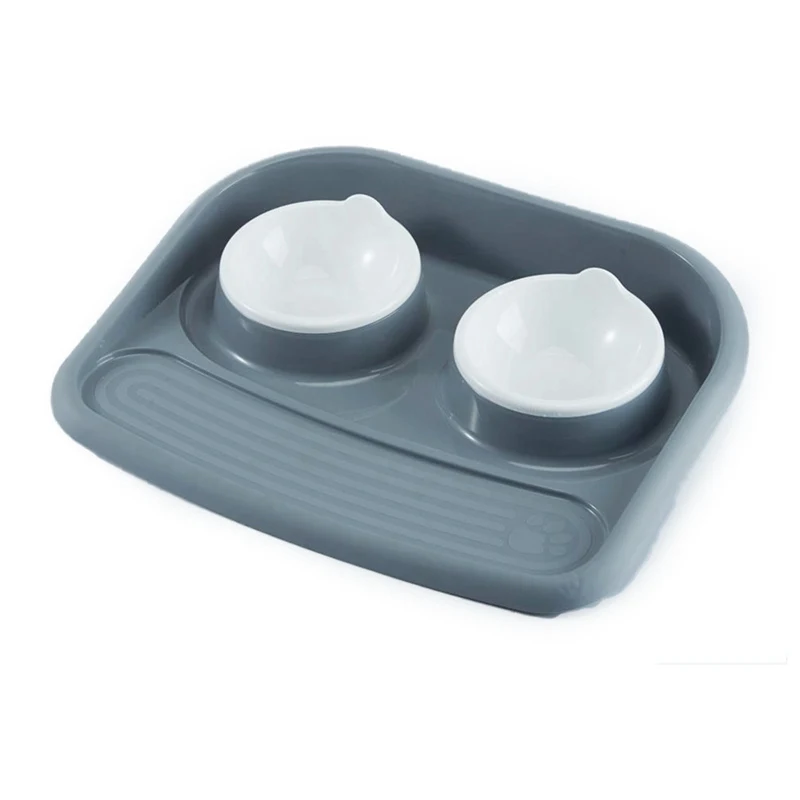 Gray environmental protection food grade plastic bone type double bowl pet bowl splashproof dog bow