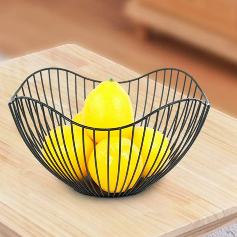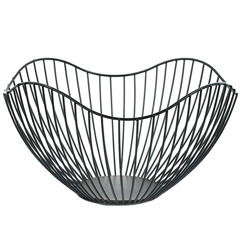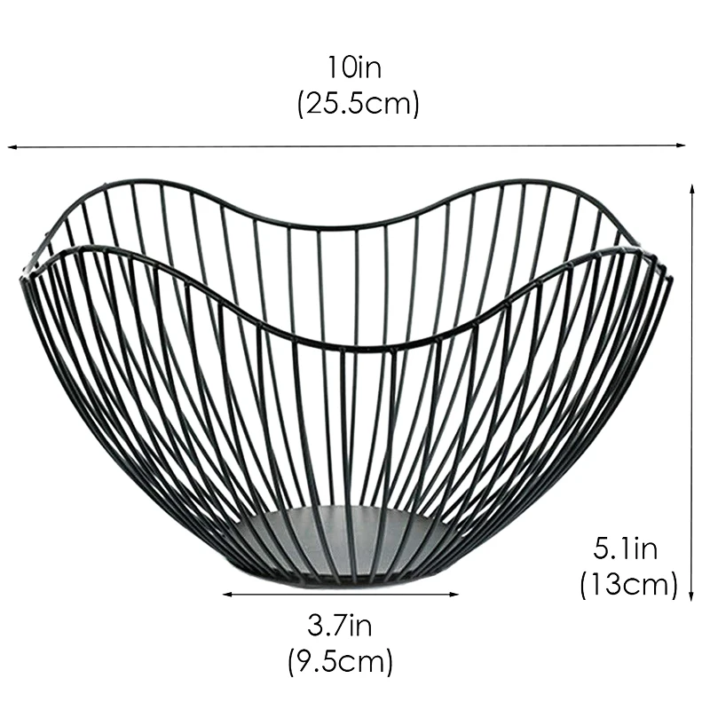 Metal Wire Fruit Container Bowls Stand for Modern Kitchen Countertop Large Round Black Storage Bask