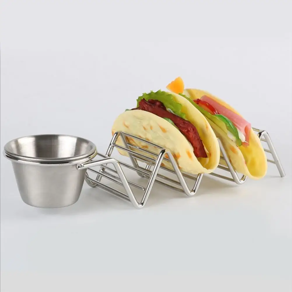 Stainless Steel Mexican Pizza Food Stand Taco Holder Stainless Steel Food Rack With One Cup Kitchen