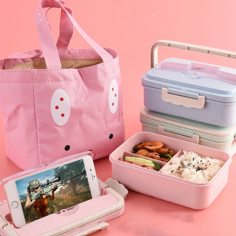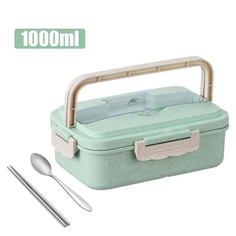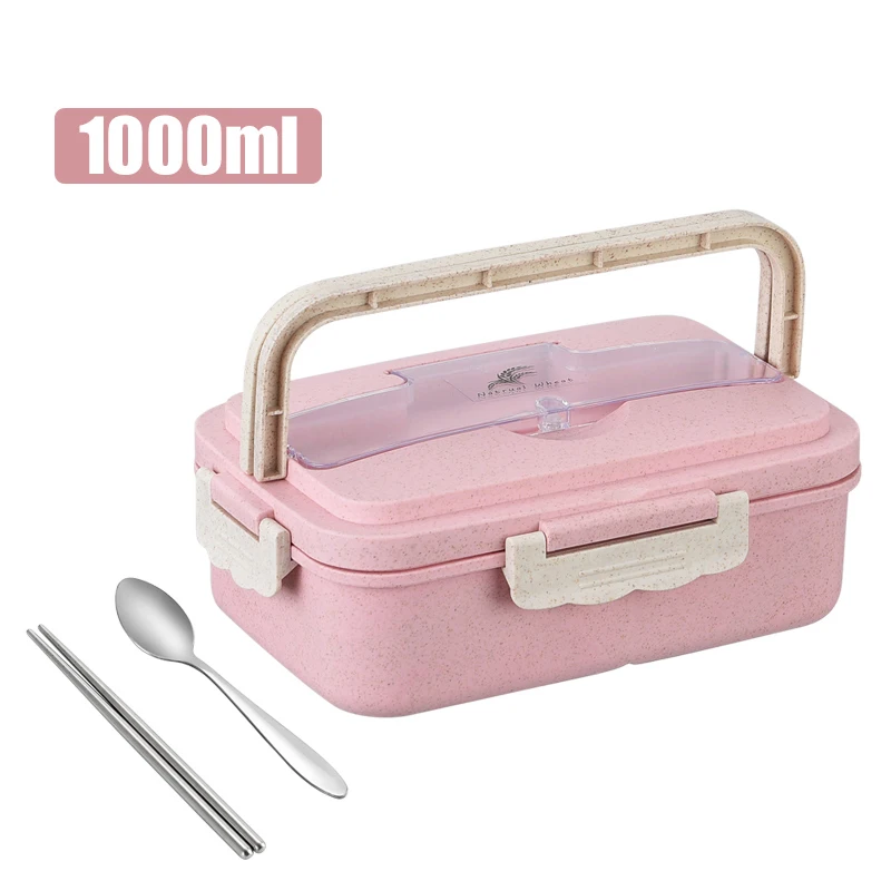 Lunch Box Wheat Straw With Chopsticks & Spoon Microwave Food Container For School Children Picnics