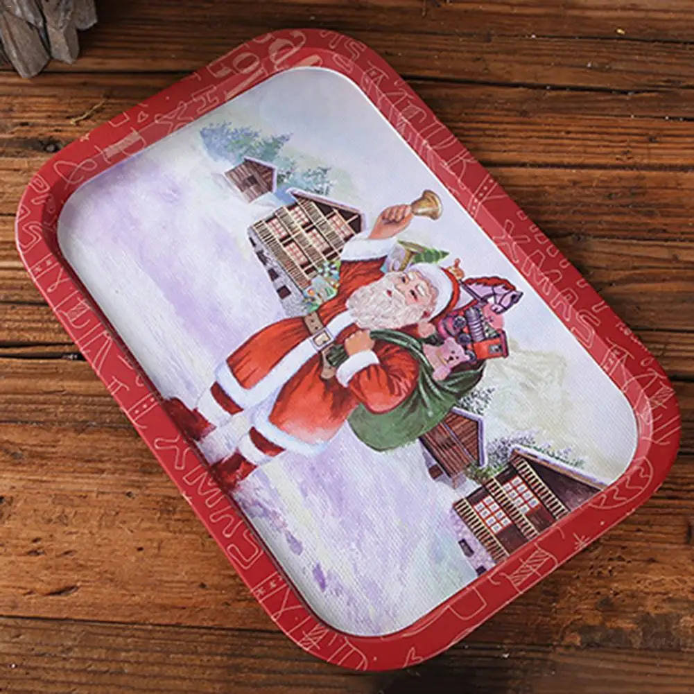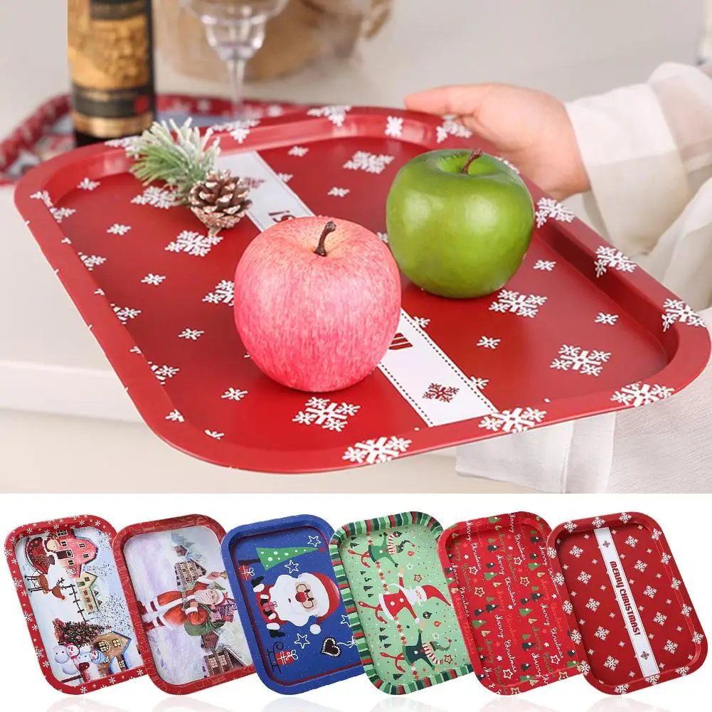 BEST Christmas Fruit Tray Iron Storage Tray Christmas Santa Claus Snowflake Rectangle Food Snack Fruit T