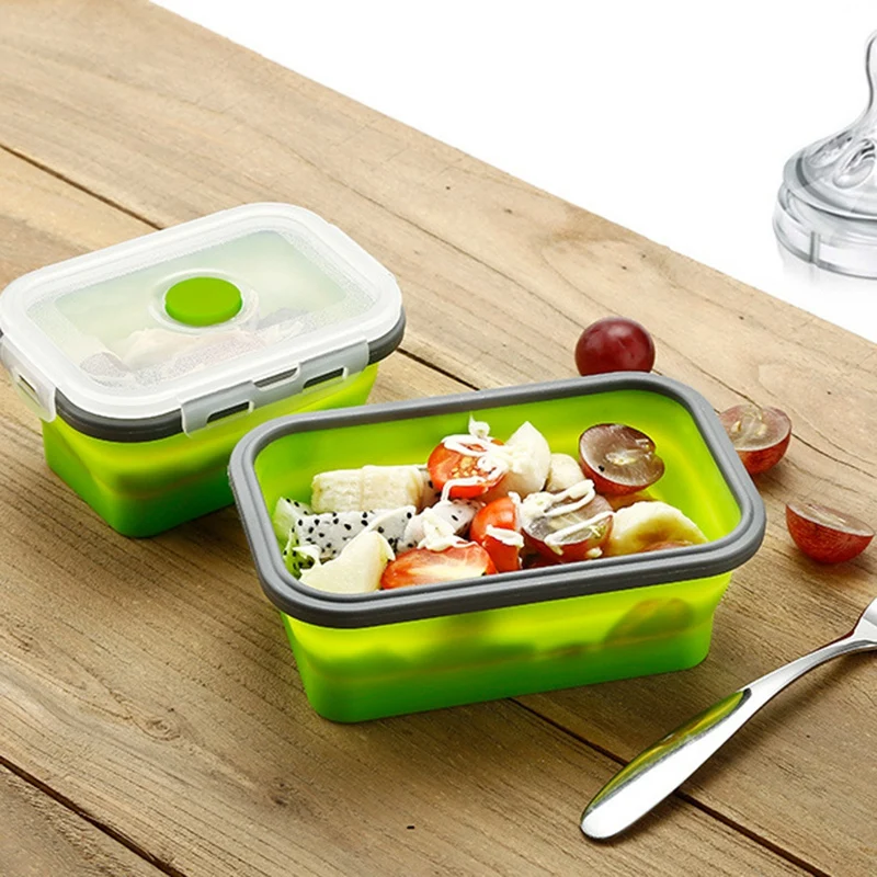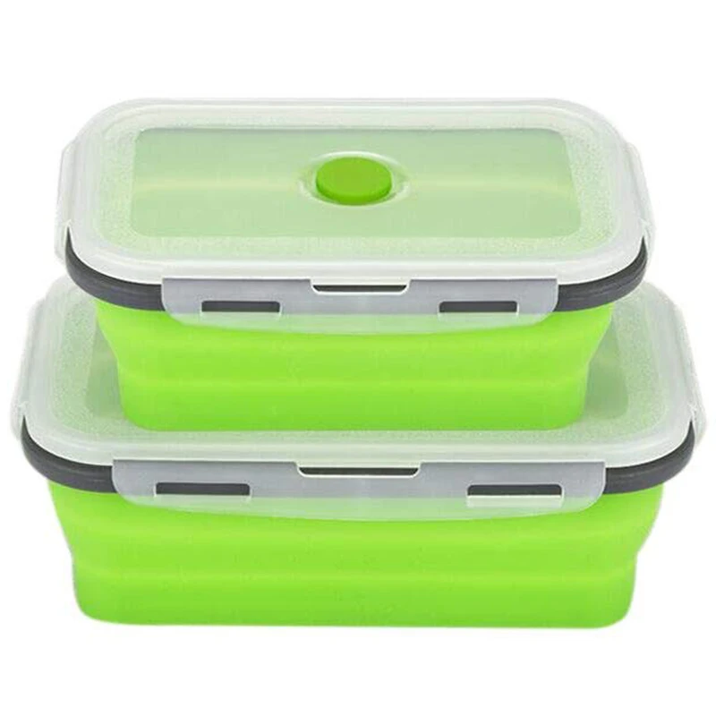 BEST QUALITY 2PCS Green Collapsible Silicone Food Storage Containers Convenient for Outdoors and Easy for Refrig